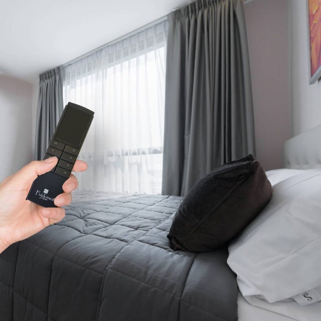Motorized curtains operate through a concealed motor installed inside the curtain track system.