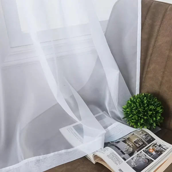 Chiffon Curtains in white, semi-translucent polyester with an artistic floral pattern. Rod-pocket design for easy hanging. Machine washable, versatile for living rooms, bedrooms, kitchens, offices, or cafés. Soft, elegant, and light-filtering, adding a functional and decorative accent to any space.