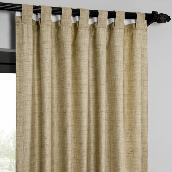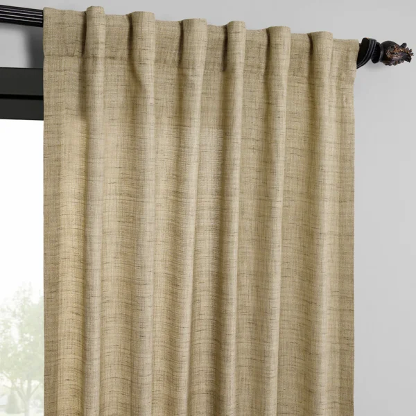 Tan Raw Linen Weave Curtains feature a textured, linen-like polyester fabric with 40% light-filtering opacity. Unlined and unbacked, this pair allows soft natural light while maintaining privacy, creating a warm, airy, and versatile look for any indoor space.